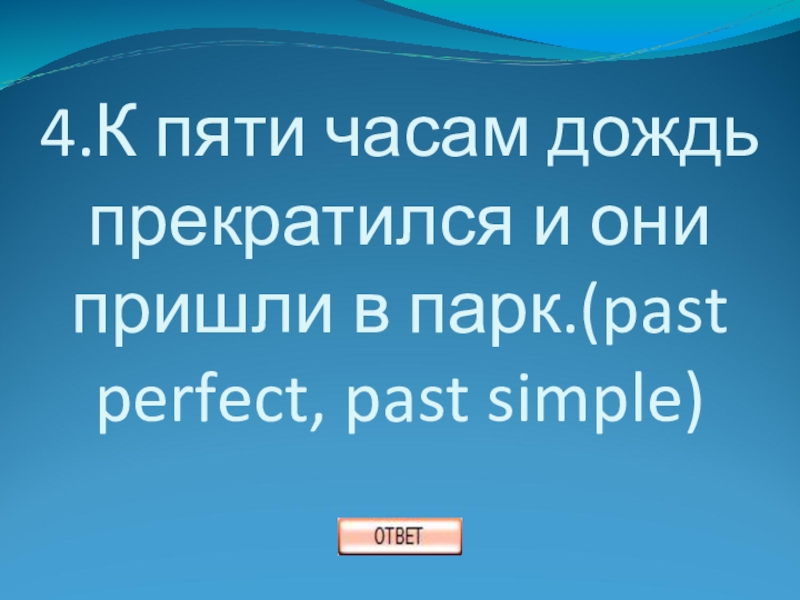 4.К пяти часам дождь прекратился и они пришли в парк.(past perfect, past simple)