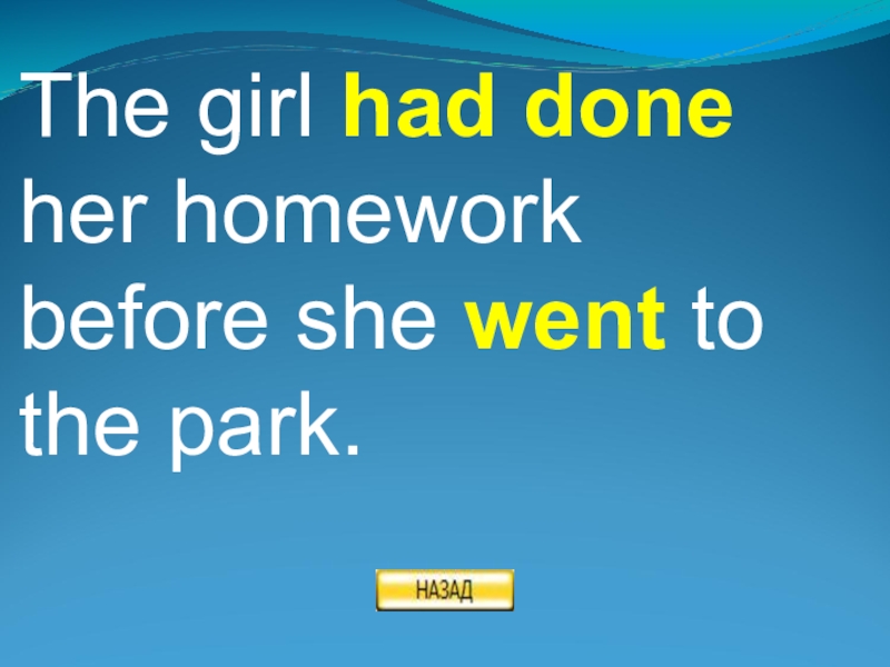 Слайд 145. Девочка сделала домашнюю работу д того как пошла в парк.