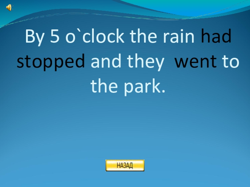 Слайд 13By 5 o`clock the rain had stopped and they went to
