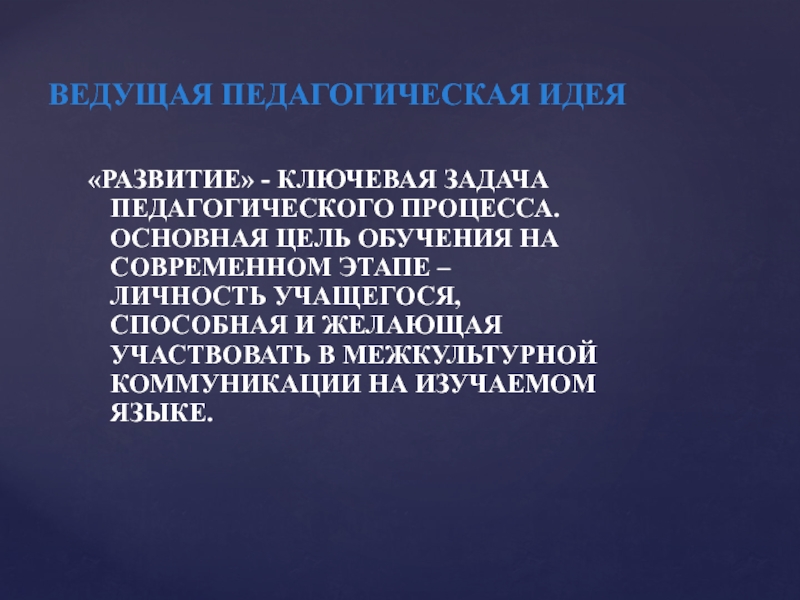 Слайд 7ВЕДУЩАЯ ПЕДАГОГИЧЕСКАЯ ИДЕЯ