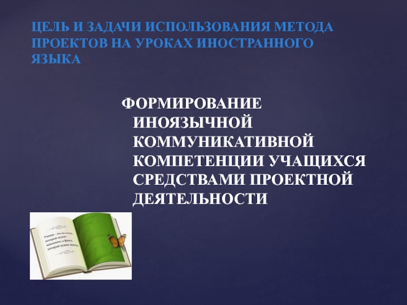 Слайд 16ЦЕЛЬ И ЗАДАЧИ ИСПОЛЬЗОВАНИЯ МЕТОДА ПРОЕКТОВ НА УРОКАХ ИНОСТРАННОГО ЯЗЫКА