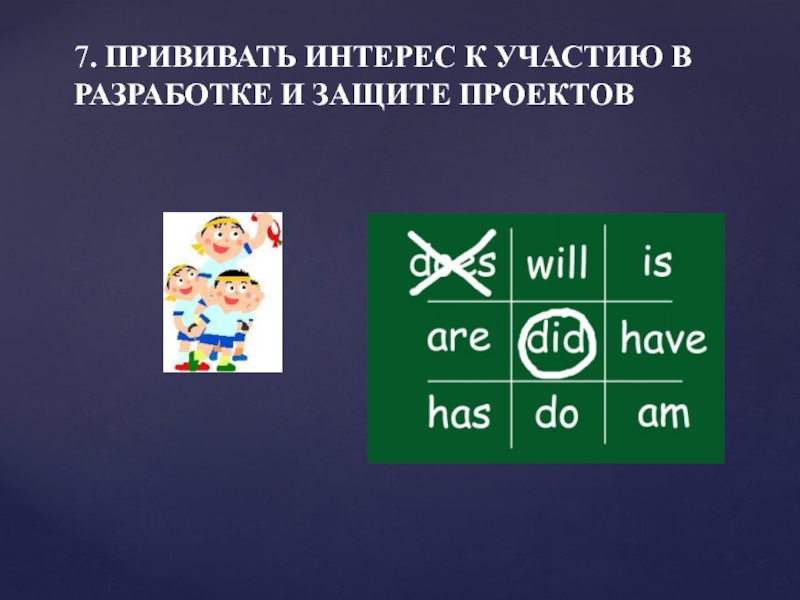 Слайд 197. ПРИВИВАТЬ ИНТЕРЕС К УЧАСТИЮ В РАЗРАБОТКЕ И ЗАЩИТЕ ПРОЕКТОВ
