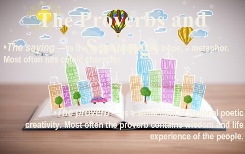 •The proverb — is a small form of national poetic creativity. Most often the proverb contains wisdom and life experience of the people.