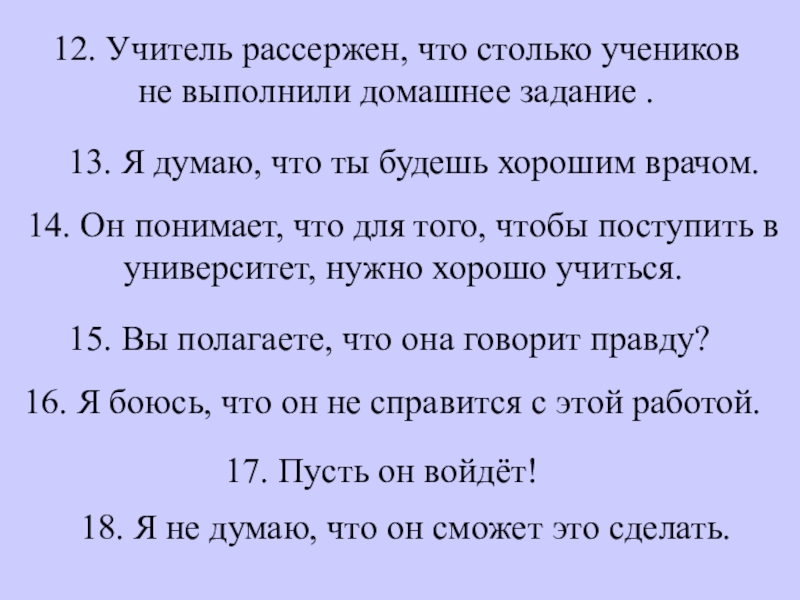 14. Он понимает, что для того, чтобы поступить в университет, нужно хорошо учиться.