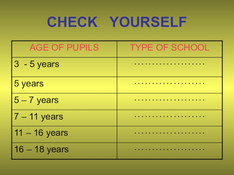 They attend the infant school from 5 to 7 and then junior school until they are 11.