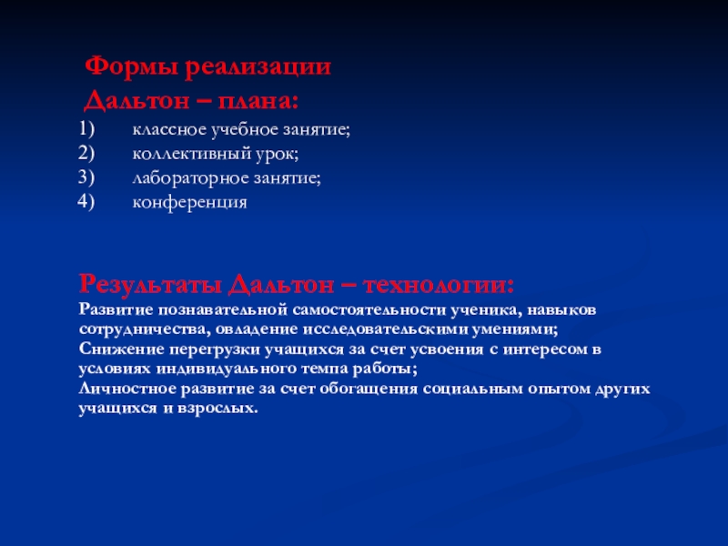 Слайд 17Формы реализации Дальтон – плана: