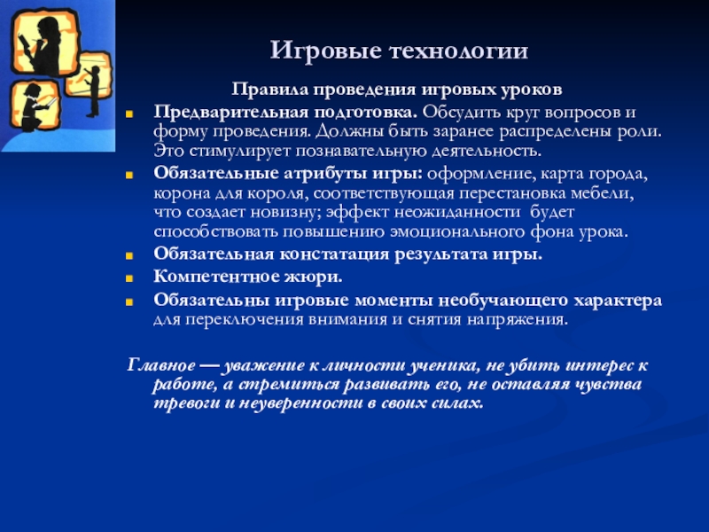 Правила проведения игровых уроков