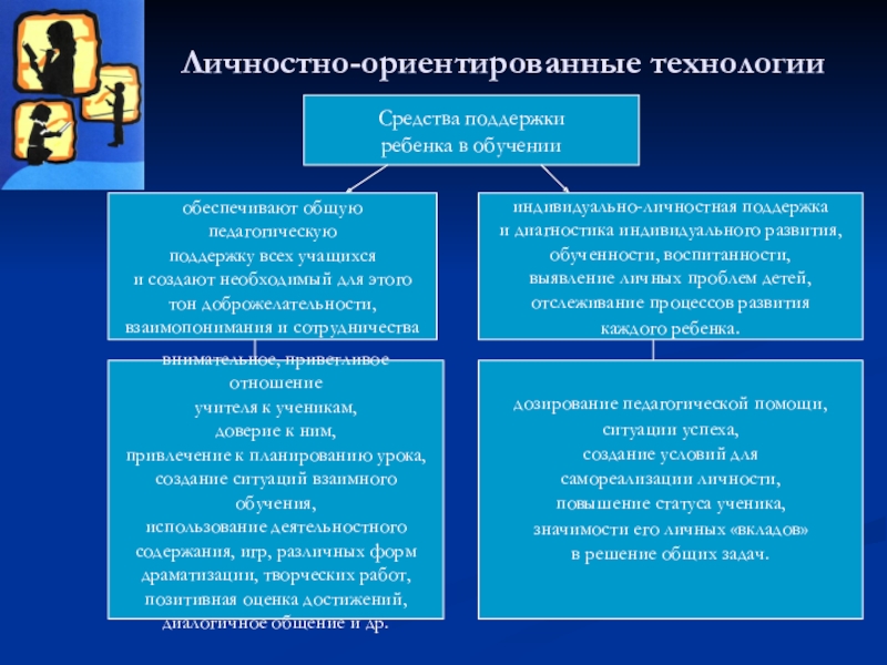 Личностно-ориентированные технологии ставят в центр всей школьной образовательной системы личность ребенка, обеспечение комфортных, бесконфликтных и безопасных условий ее развития, реализации ее природных потенциалов.