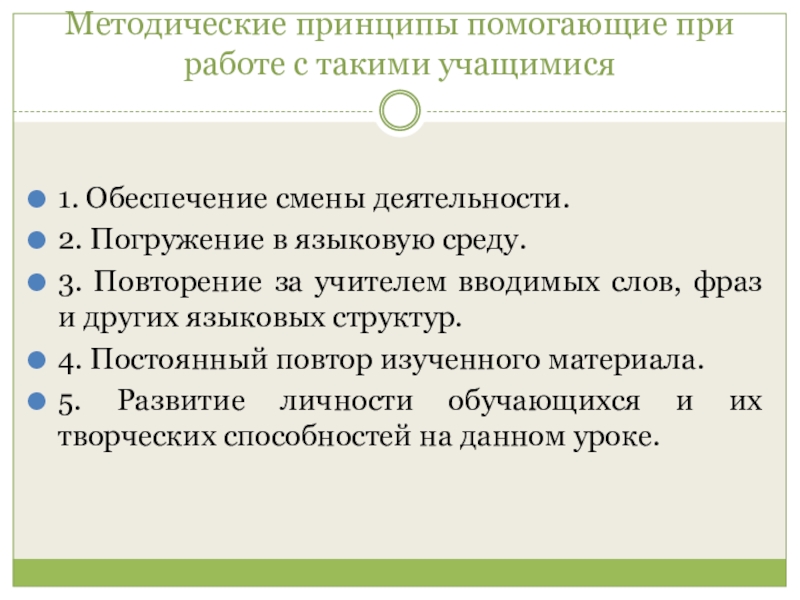 Слайд 4Методические принципы помогающие при работе с такими учащимися