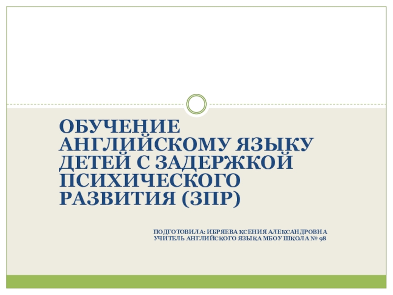 Слайд 1ОБУЧЕНИЕ АНГЛИЙСКОМУ ЯЗЫКУ ДЕТЕЙ С ЗАДЕРЖКОЙ ПСИХИЧЕСКОГО РАЗВИТИЯ (ЗПР)