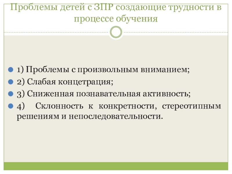 Слайд 3Проблемы детей с ЗПР создающие трудности в процессе обучения