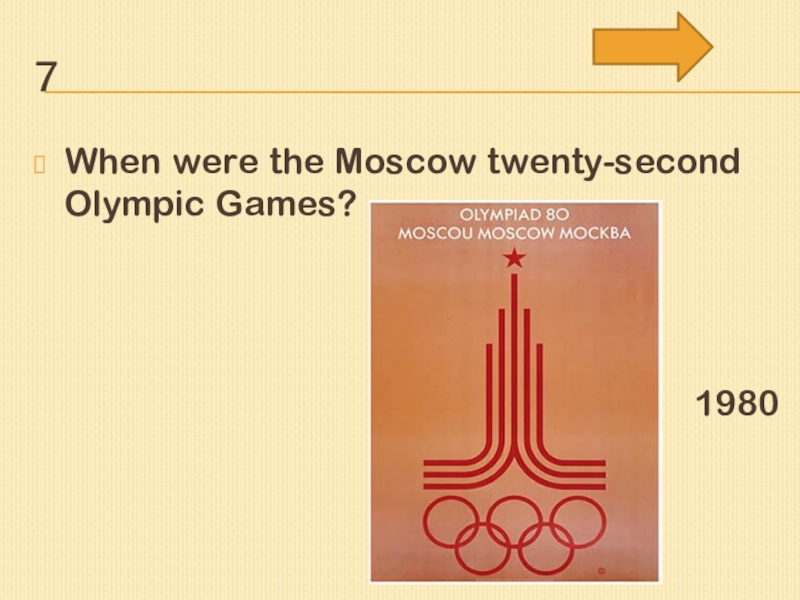 7When were the Moscow twenty-second Olympic Games? 1980