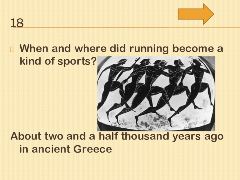 18When and where did running become a kind of sports? About two and a half thousand years