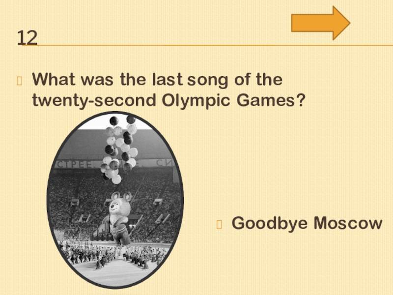 12What was the last song of the twenty-second Olympic Games?Goodbye Moscow