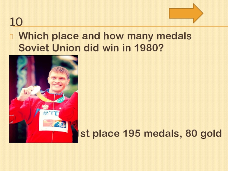 10Which place and how many medals Soviet Union did win in 1980?1st place 195 medals, 80 gold