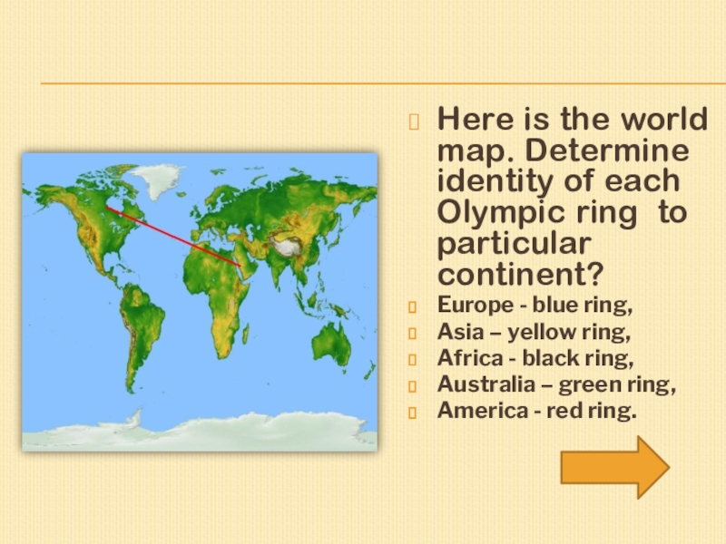 Слайд 21Here is the world map. Determine identity of each Olympic ring