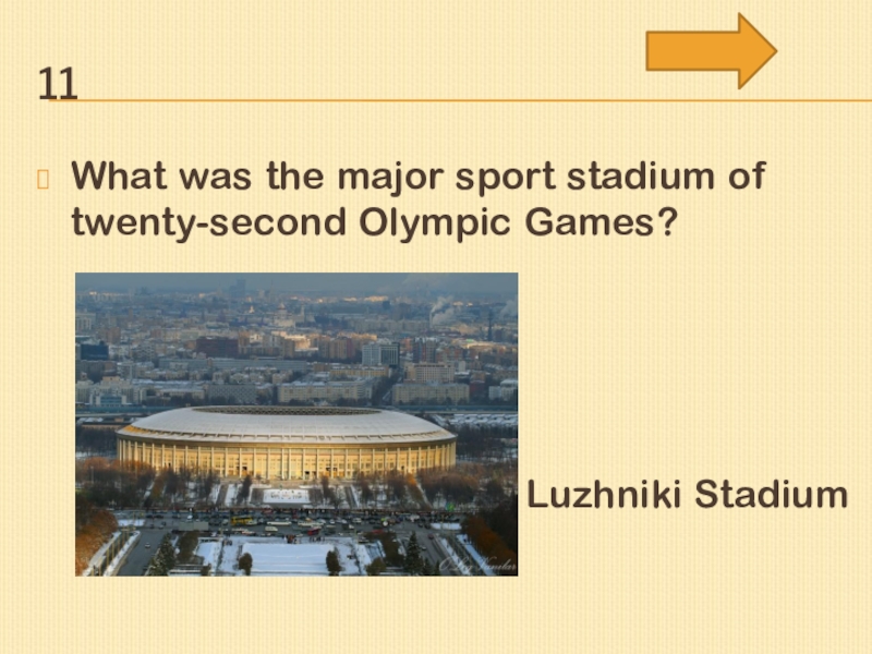 11What was the major sport stadium of twenty-second Olympic Games?Luzhniki Stadium