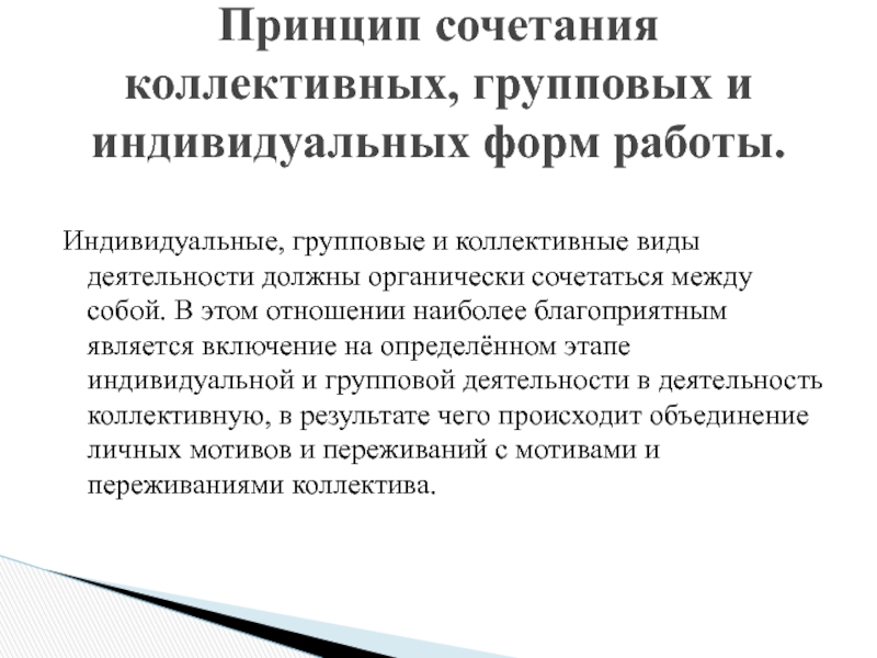 Принцип сочетания коллективных, групповых и индивидуальных форм работы.