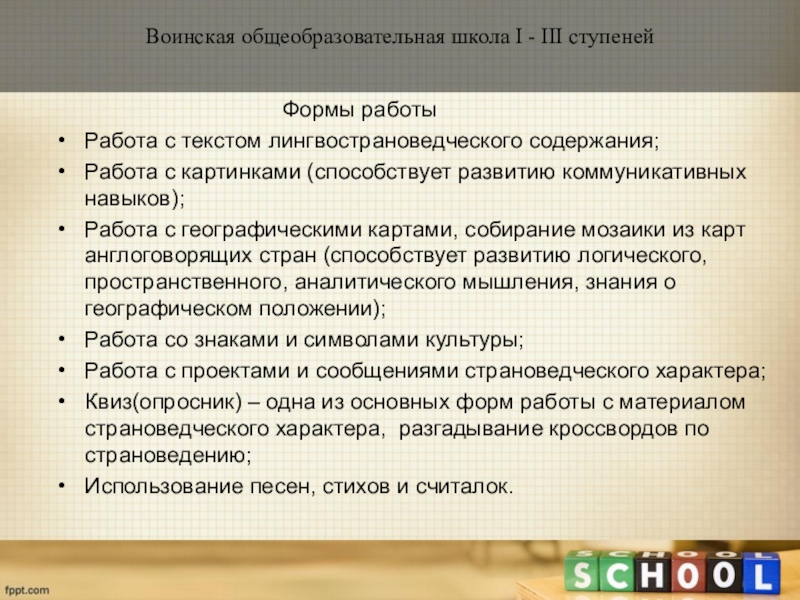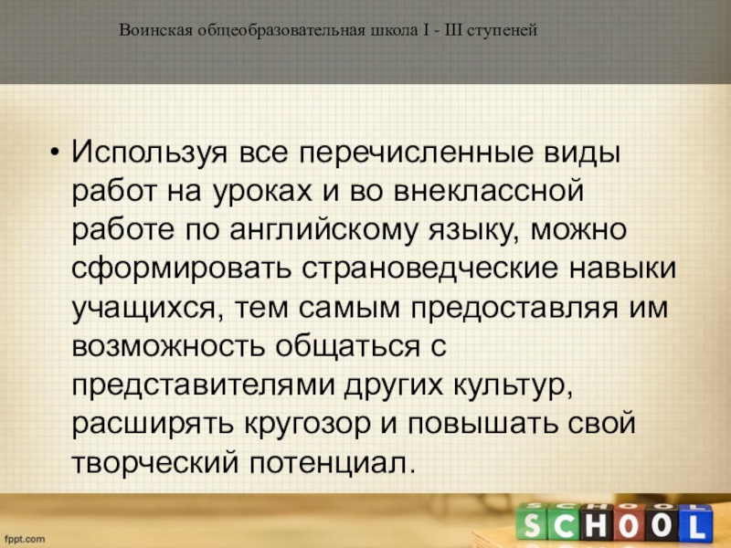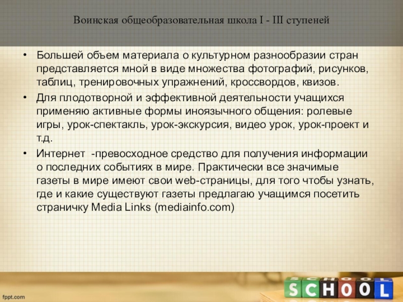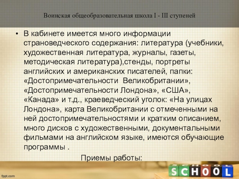 Это сайт презентаций, где можно хранить и обмениваться своими презентациями, докладами, проектами, шаблонами в формате PowerPoint с другими пользователями. Мы помогаем школьникам, студентам, учителям, преподавателям хранить и обмениваться учебными материалами.