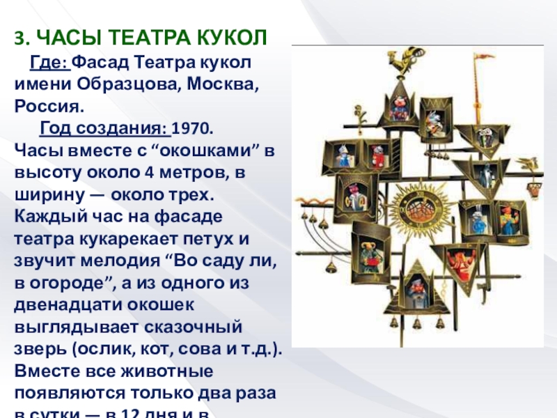 Слайд 343. ЧАСЫ ТЕАТРА КУКОЛ