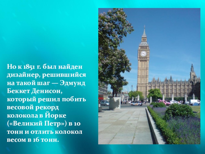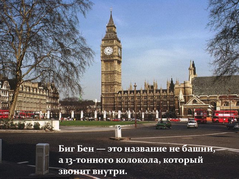 Слайд 4Биг Бен — это название не башни, а 13-тонного колокола, который