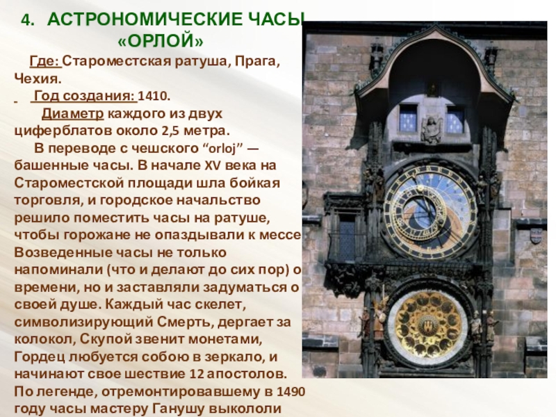 Слайд 36 4. АСТРОНОМИЧЕСКИЕ ЧАСЫ «ОРЛОЙ»