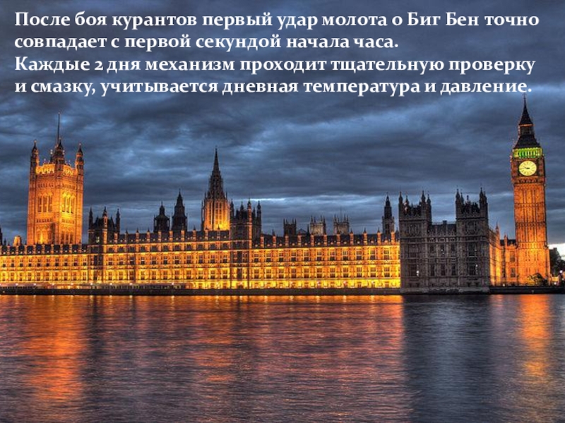 Слайд 17После боя курантов первый удар молота о Биг Бен точно совпадает