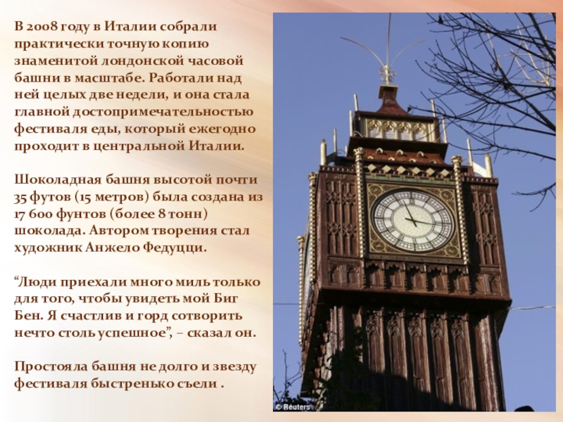 Слайд 28В 2008 году в Италии собрали практически точную копию знаменитой лондонской