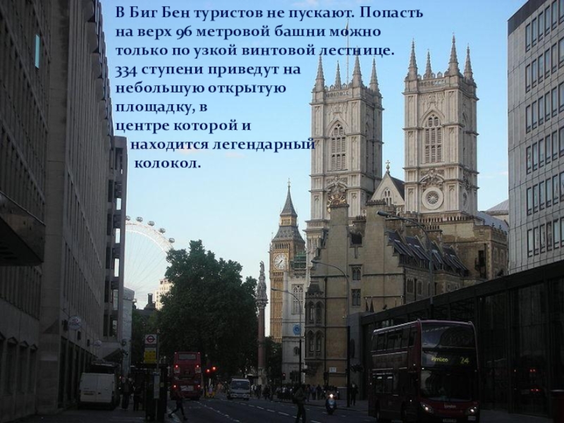 Слайд 14В Биг Бен туристов не пускают. Попасть на верх 96 метровой