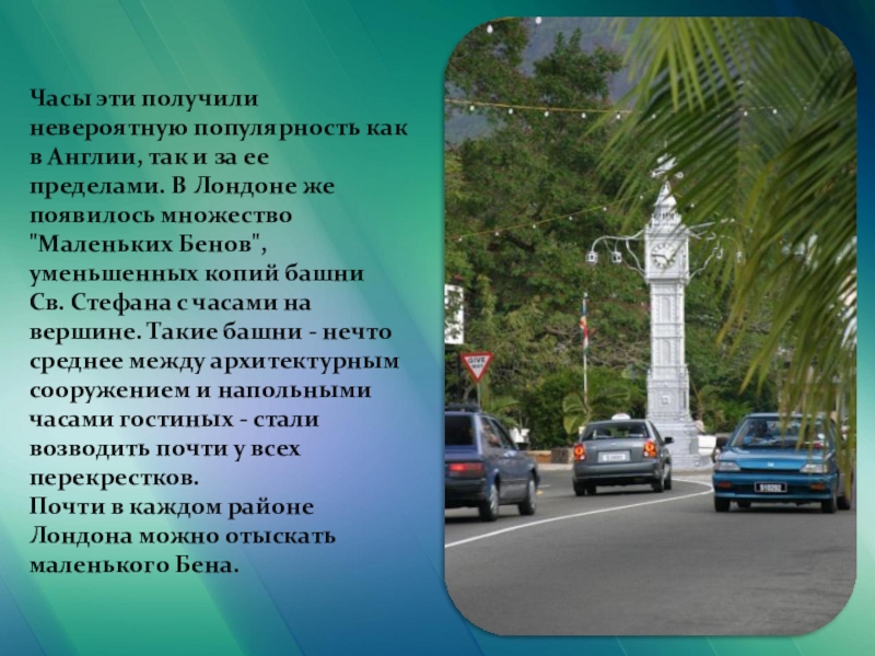 Слайд 22Часы эти получили невероятную популярность как в Англии, так и за