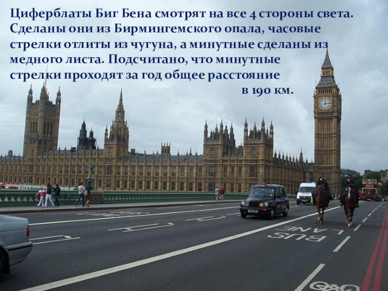 Слайд 19Циферблаты Биг Бена смотрят на все 4 стороны света. Сделаны они
