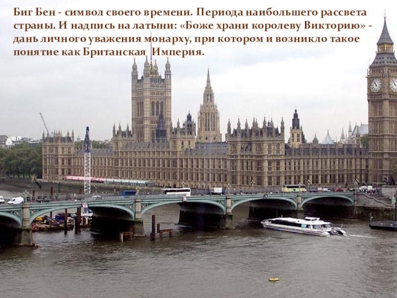 Слайд 20Биг Бен - символ своего времени. Периода наибольшего рассвета страны. И