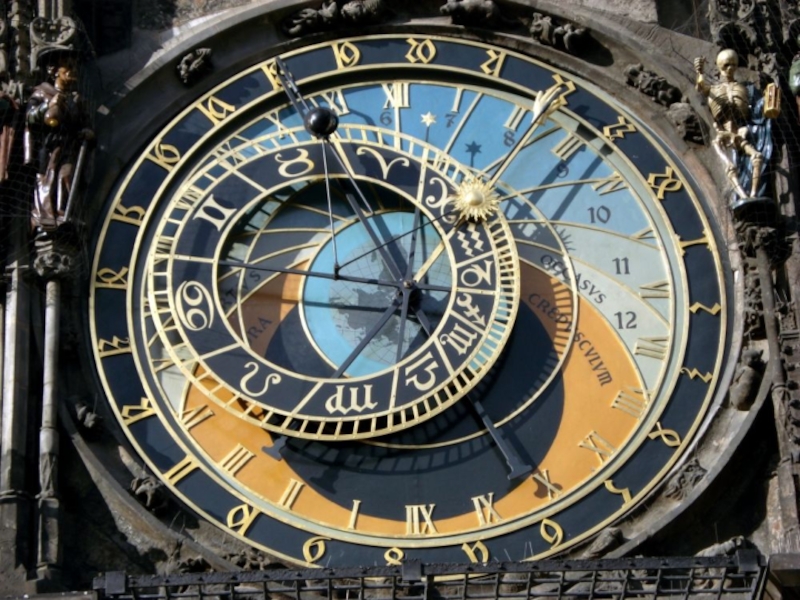 В переводе с чешского “orloj” — башенные часы. В начале XV века на Староместской площади шла бойкая торговля, и городское начальство решило поместить часы на ратуше, чтобы горожане не опаздывали к мессе. Возведенные часы не только напоминали (что и делают до сих пор) о времени, но и заставляли задуматься о своей душе. Каждый час скелет, символизирующий Смерть, дергает за колокол, Скупой звенит монетами, Гордец любуется собою в зеркало, и начинают свое шествие 12 апостолов. По легенде, отремонтировавшему в 1490 году часы мастеру Ганушу выкололи глаза, чтобы он не смог воспроизвести что-то подобное.