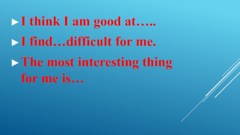 I think I am good at…..I find…difficult for me.The most interesting thing for me is…