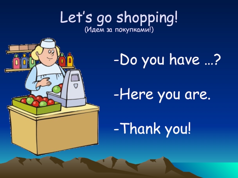 Let’s go shopping! (Идем за покупками!)-Do you have …?-Here you are.-Thank you!