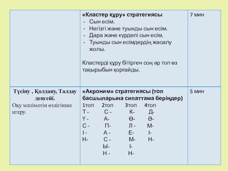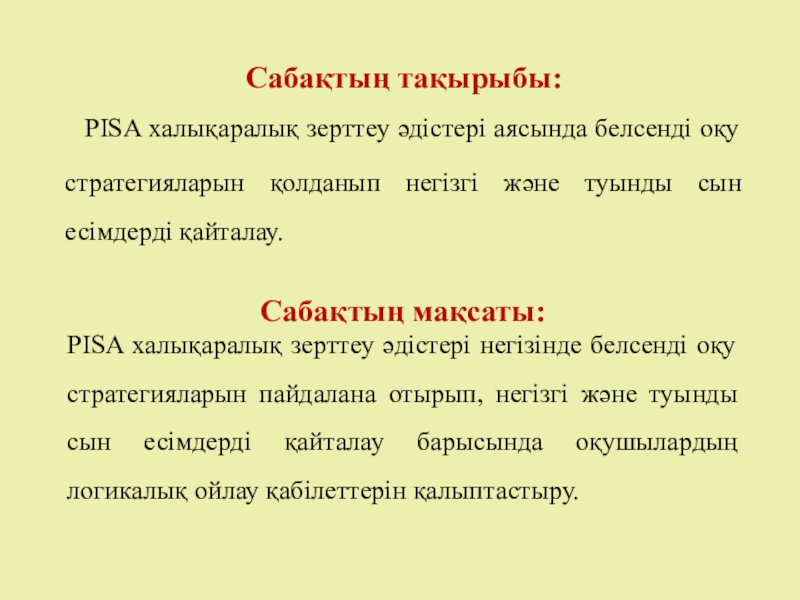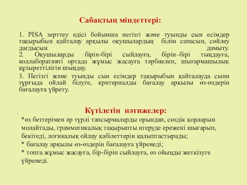 PISA халықаралық зерттеу әдістері негізінде белсенді оқу стратегияларын пайдалана отырып, негізгі және туынды сын есімдерді қайталау барысында оқушылардың логикалық ойлау қабілеттерін қалыптастыру.