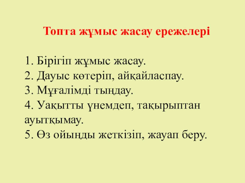 * топта жұмыс жасауға, бір-бірін сыйлауға, өз ойыңды жеткізуге үйренеді.