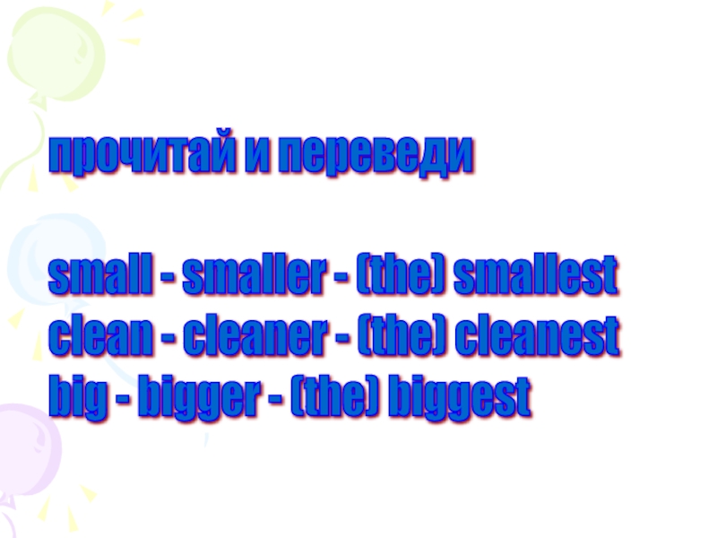 Слайд 5прочитай и переведи small - smaller - (the) smallest clean