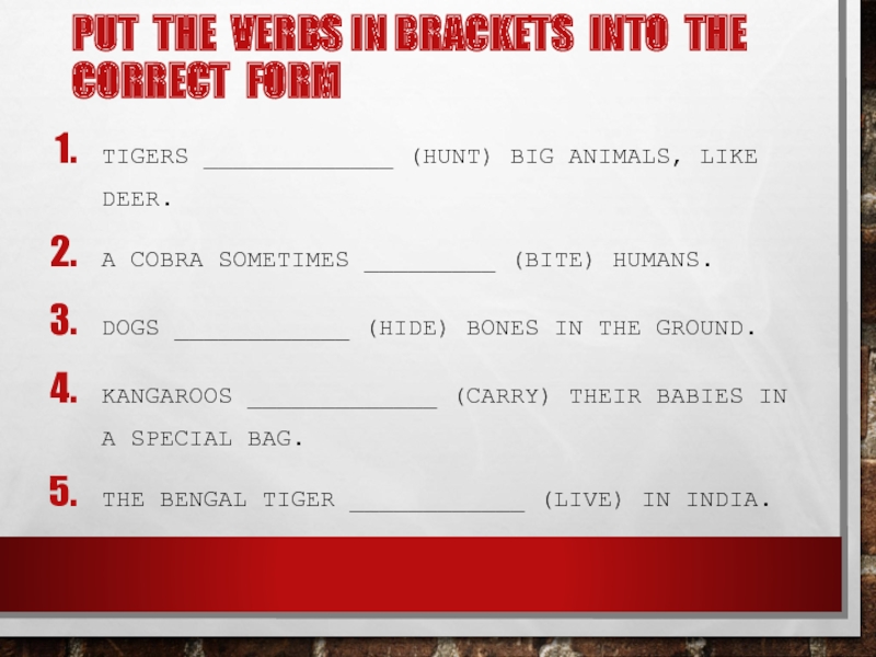 Tigers _____________ (hunt) big animals, like deer.