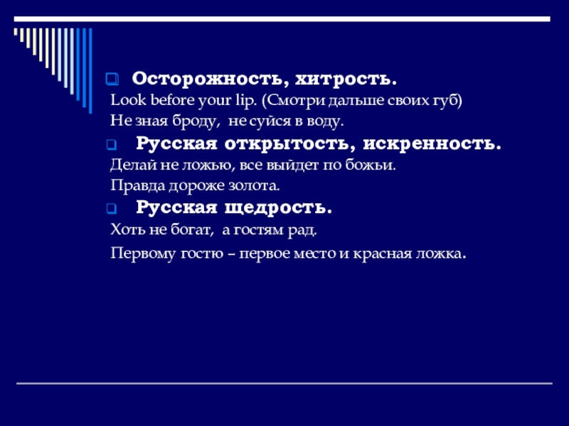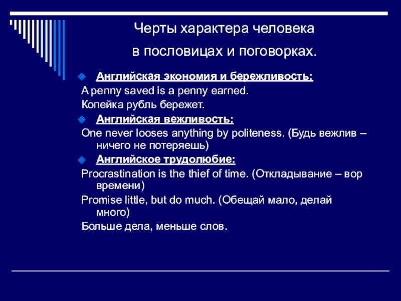 По смысловому содержанию пословиц и поговорок можно судить о менталитете определенных наций.