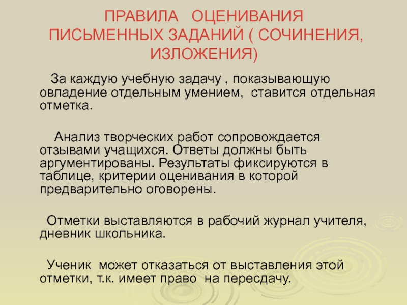 Оцениваться с помощью отметки могут только результаты деятельности ученика и процесс их формирования, но не личные качества ребенка. Оценивать можно только то, чему учат.