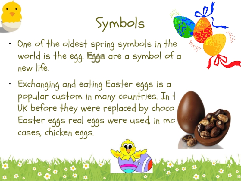 SymbolsOne of the oldest spring symbols in the world is the egg. Eggs are a symbol of