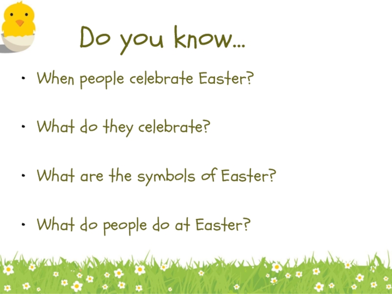 Do you know… When people celebrate Easter? What do they celebrate? What are the symbols of Easter? What do people do at Easter?