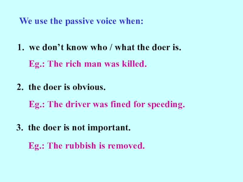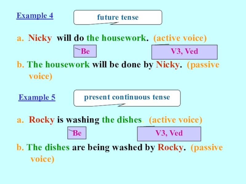 3. In b, ‘by’ is added before the doer of the action.