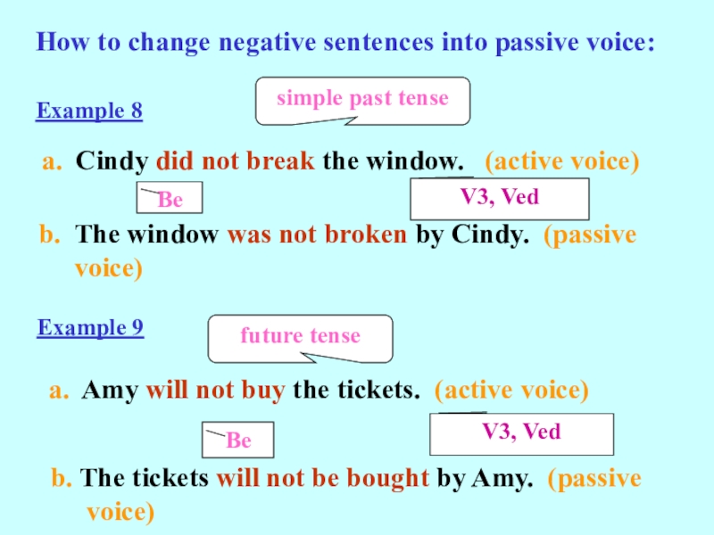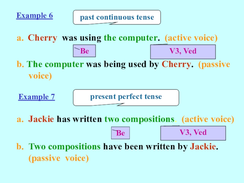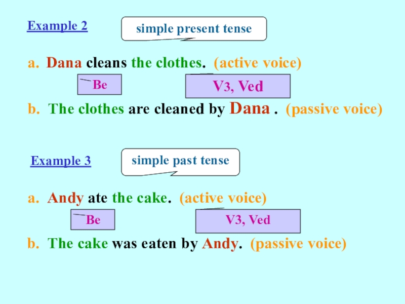In b, the verb is changed into the passive form (Be + V3, Ved).