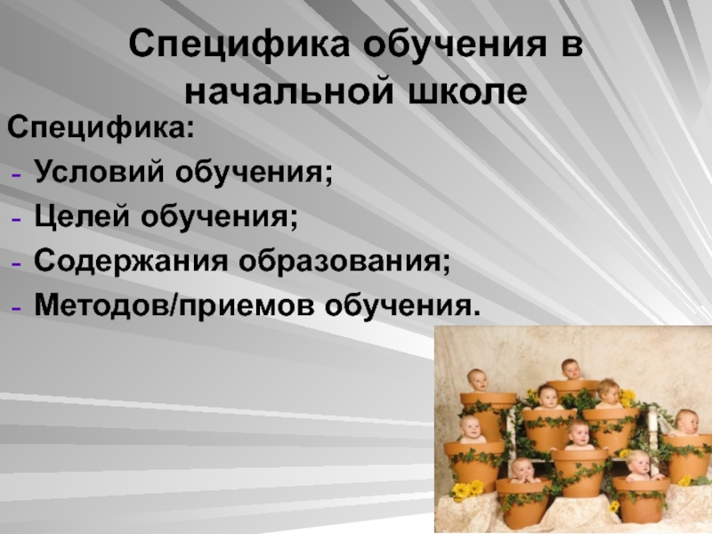 Слайд 70Специфика обучения в начальной школе