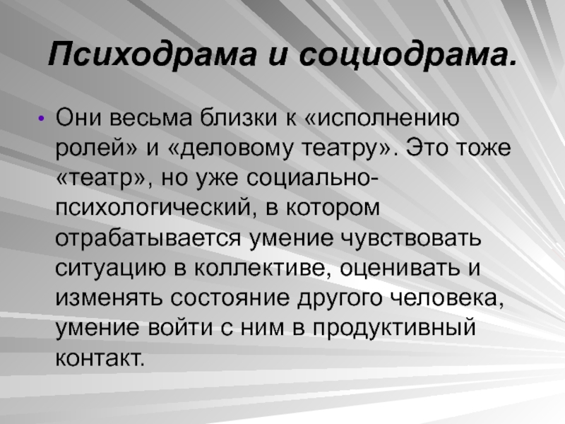 • творческий, в значительной мере импровизационный, очень активный характер этой деятельности («поле творчества»);