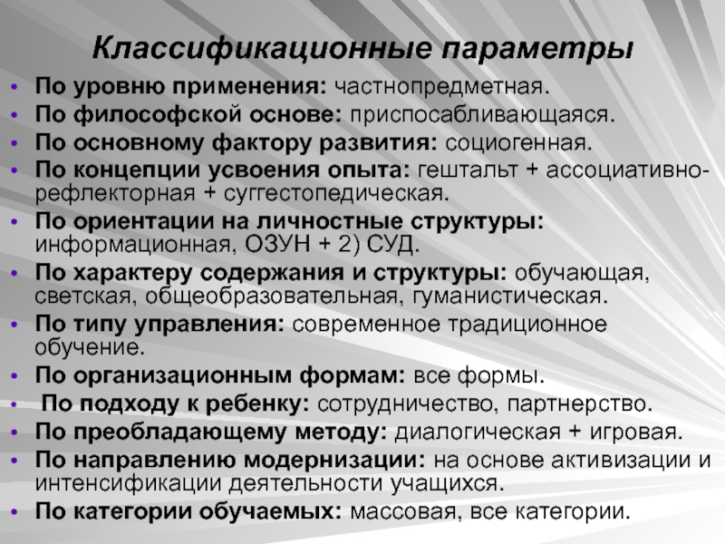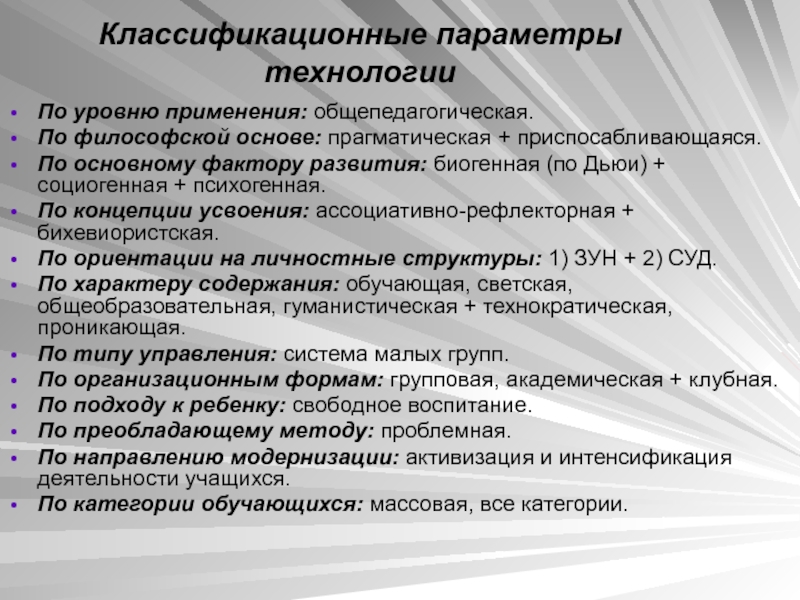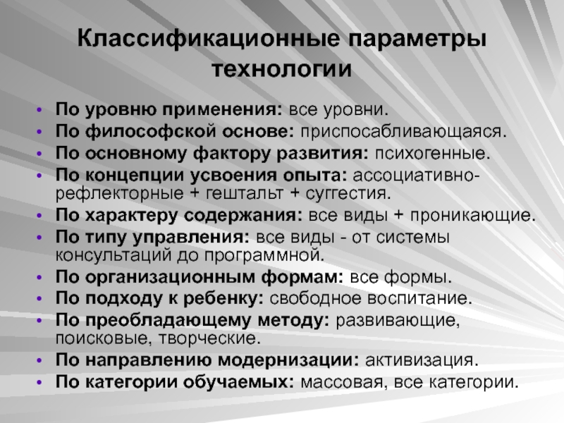 Слайд 16Классификационные параметры технологии