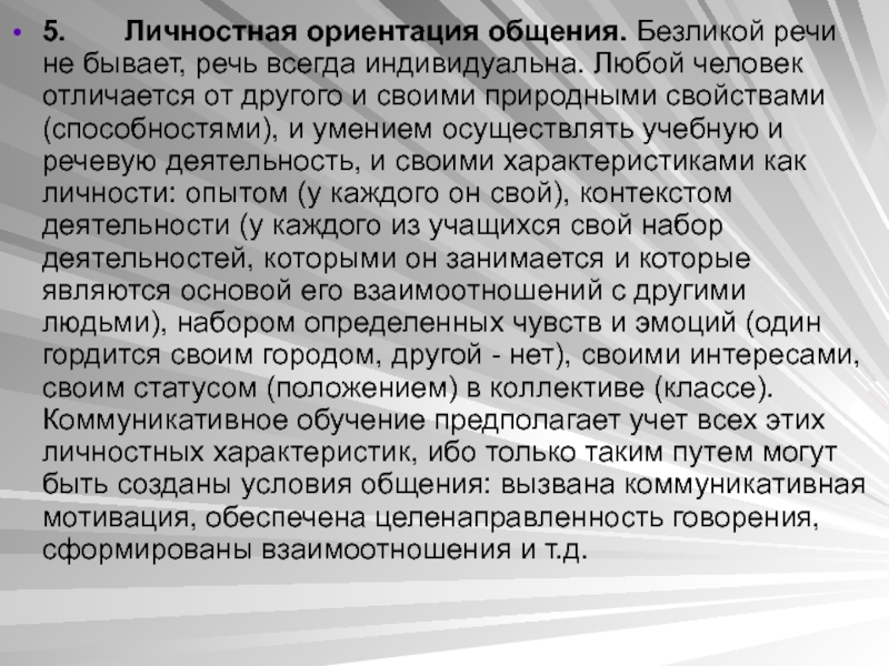 Слайд 615. Личностная ориентация общения. Безликой речи не бывает, речь всегда индивидуальна.