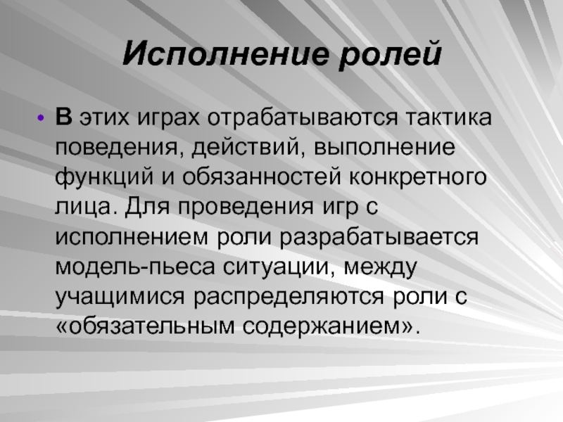 игровые действия как средство реализации этих ролей;